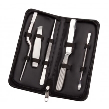 De 100% Chef Top Chef Plating Set bestaat uit 5 delen en wordt geleverd in een imitatielederen etui. De set bestaat uit:
