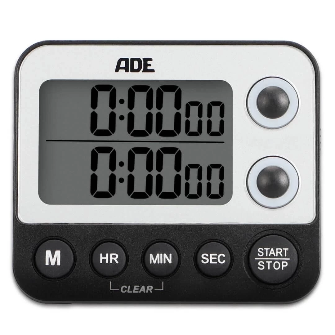 U kunt de digitale kookwekker van ADE instellen tot 100 uur. Zodra de tijd is verstreken, geeft de wekker een visueel signaal. Daarbij kunt u optioneel een akoestisch geluidsalarm instellen op twee verschillende volumeniveaus. Naast kookwekker kunt u het design tevens gebruiken als stopwatch.
