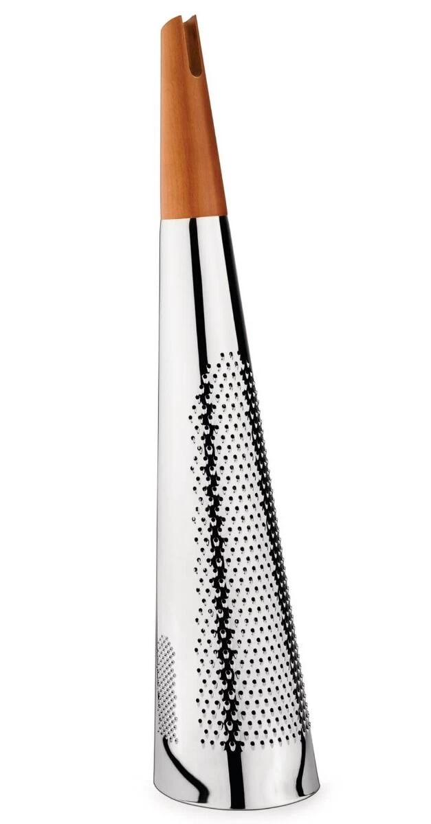 Gebruik de Alessi Todo voor het raspen van kaas, nootmuskaat of chocolade. Aan de smalle bovenzijde zit een houten deel, waardoor de rasp gemakkelijk vasthoudt.