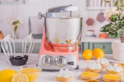 De Coral Crush, koraalkleurige, Ankarsrum Assistent Original kneedmachine is vervaardigd uit gegoten aluminium en heeft een roestvrijstalen mengkom met een inhoud van 7 liter. De vernieuwde versie 6230 is uitgerust met een extra krachtige 1500 Watt sterke motor. De machine heeft een capaciteit voor het kneden van 5 kg deeg of 1,5 liter vloeistof. Tevens is de machine met accessoires om te bouwen tot een veelzijdige keukenmachine. De keukenmachine is: 40 x 27 x 36 cm (l x b x h).