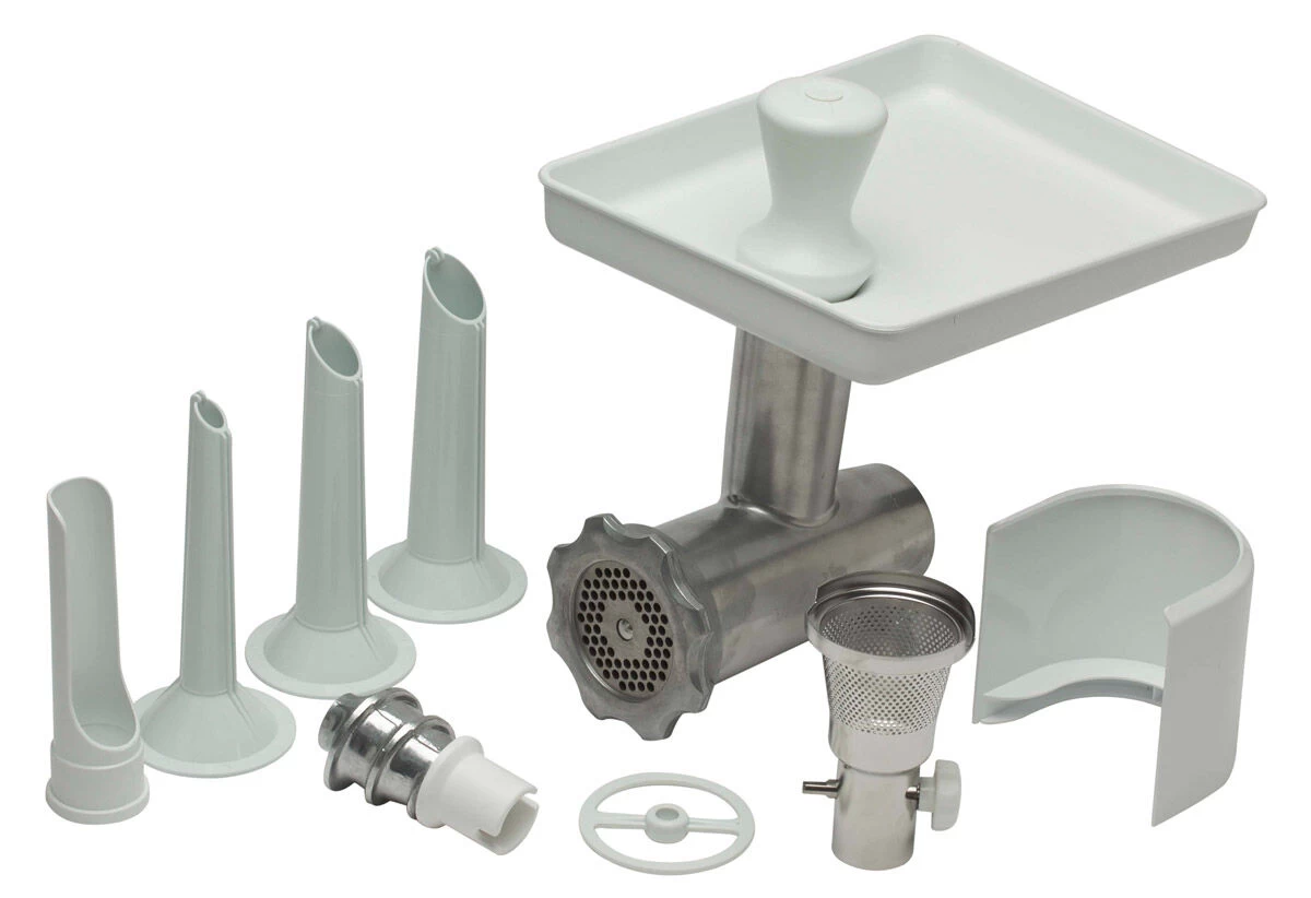 De Ankarsrum Assistent Original Harvest Package bestaat uit de vleesmolen met een 4,5 mm gatenschijf, een worstvultrechter ø 2 cm en de pureerzeef. De gehaktmolen en pureerzeef zijn gemaakt van robuust aluminium en staal, invoerbladen en de worstvultrechter zijn vervaardigd uit kunststof.