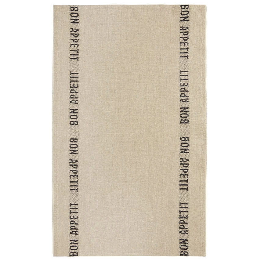 De Charvet BON APPETIT theedoek is vervaardigd uit 100% linnen. De theedoek is geweven in een beige kleur met aan beide zijde in het zwart de tekst: BON APPETIT. De doek is 75 cm lang en 45 cm breed. Gebruik voor het drogen van uw afwas.