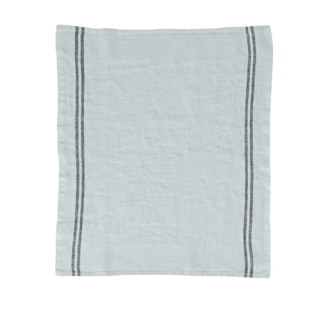 De Charvet COUNTRY theedoek is vervaardigd uit 100% linnen. De theedoek is geweven in een lichtblauwe kleur met twee donkere lijnen aan beide lange zijdes. Het doek is 75 cm lang en 52 cm breed. Gebruik voor het drogen van uw afwas.