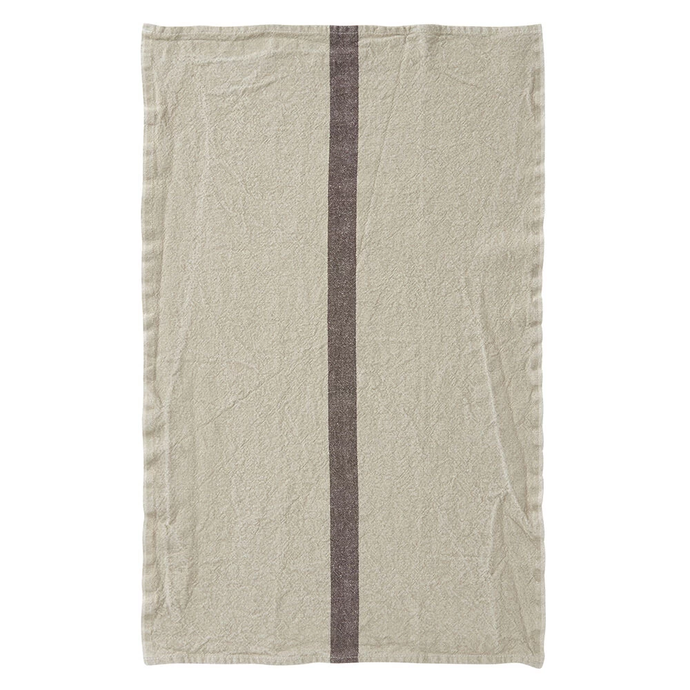 De Charvet DOUDOU theedoek is vervaardigd uit 100% linnen. De theedoek is geweven in een beige kleur met een brede bruine streep in het midden. De doek is 75 cm lang en 45 cm breed.