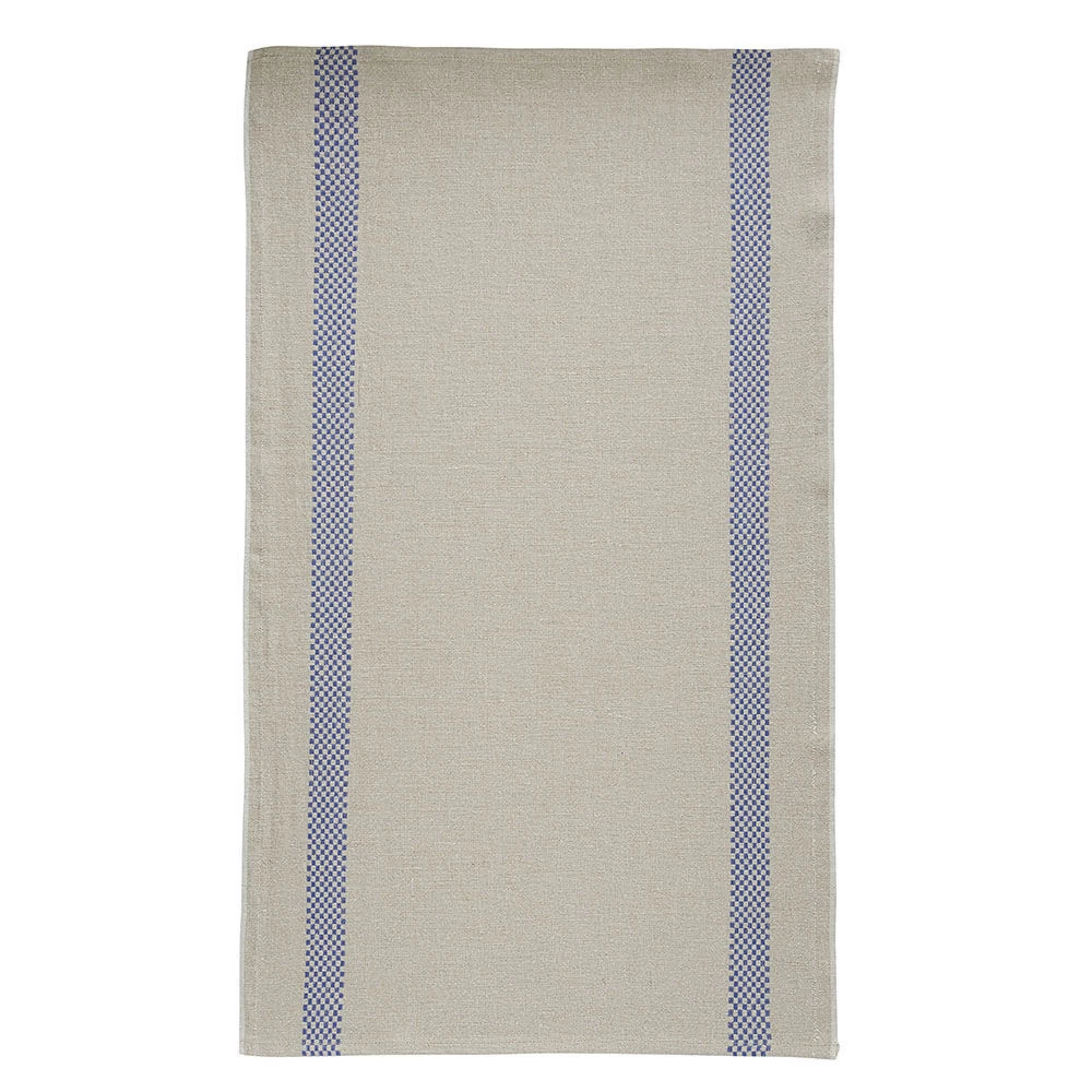 De Charvet LUSTRUCU theedoek is vervaardigd uit 100% linnen. De theedoek is geweven in een beige kleur met aan beide lange zijdes een streep met beige/blauwe blokken. Het doek is 75 cm lang en 45 cm breed. Gebruik voor het drogen van uw afwas.