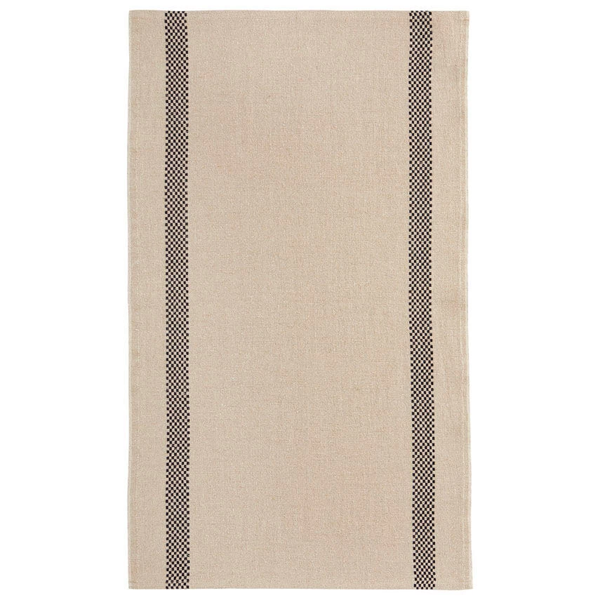 De Charvet LUSTRUCU theedoek is vervaardigd uit 100% linnen. De theedoek is geweven in een beige kleur met aan beide lange zijdes een streep met beige/zwarte blokken. Het doek is 75 cm lang en 45 cm breed. Gebruik voor het drogen van uw afwas.