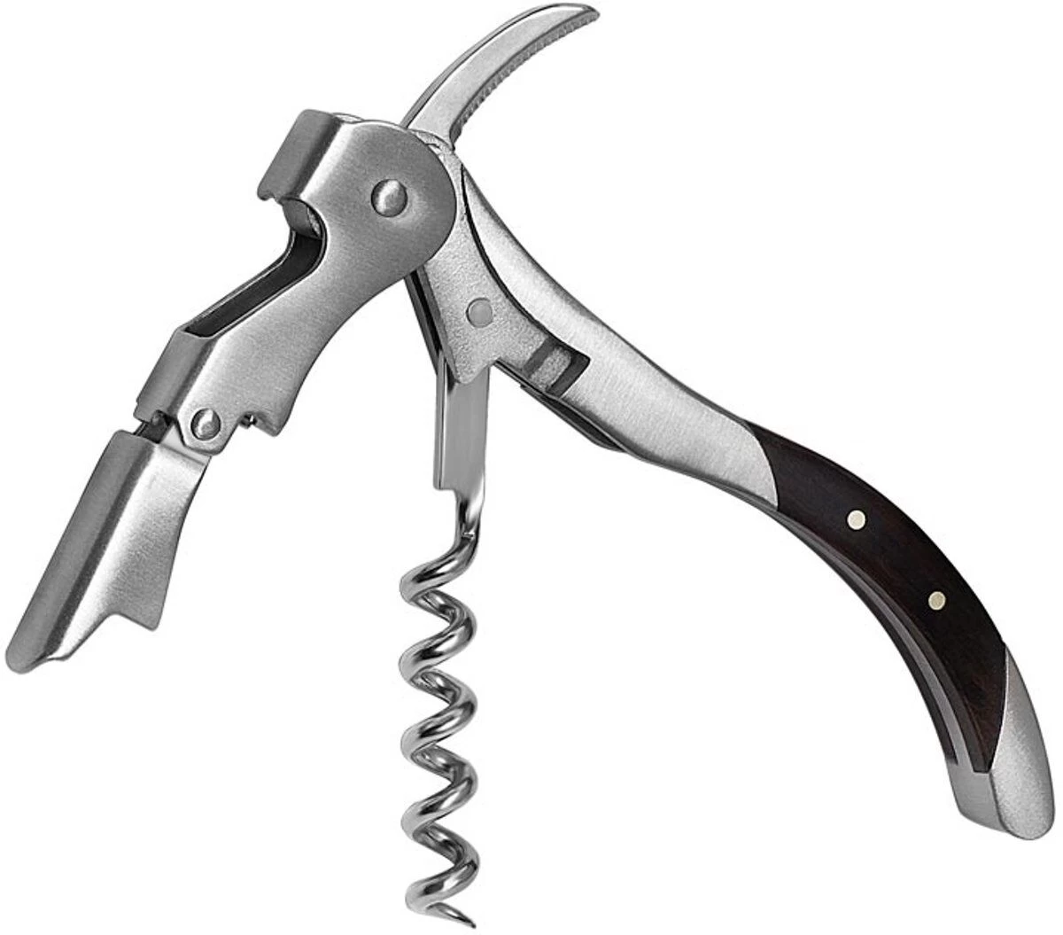 De Cookai kurkentrekker is volledig gemaakt van roestvrij staal met een houten handgreep. De opener is voorzien van een kurkentrekkerspiraal, een twee-staps hefboom, een capsulesnijder en een flesopener.