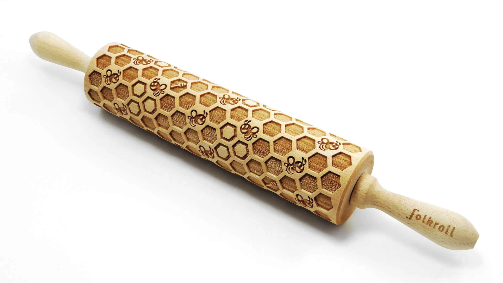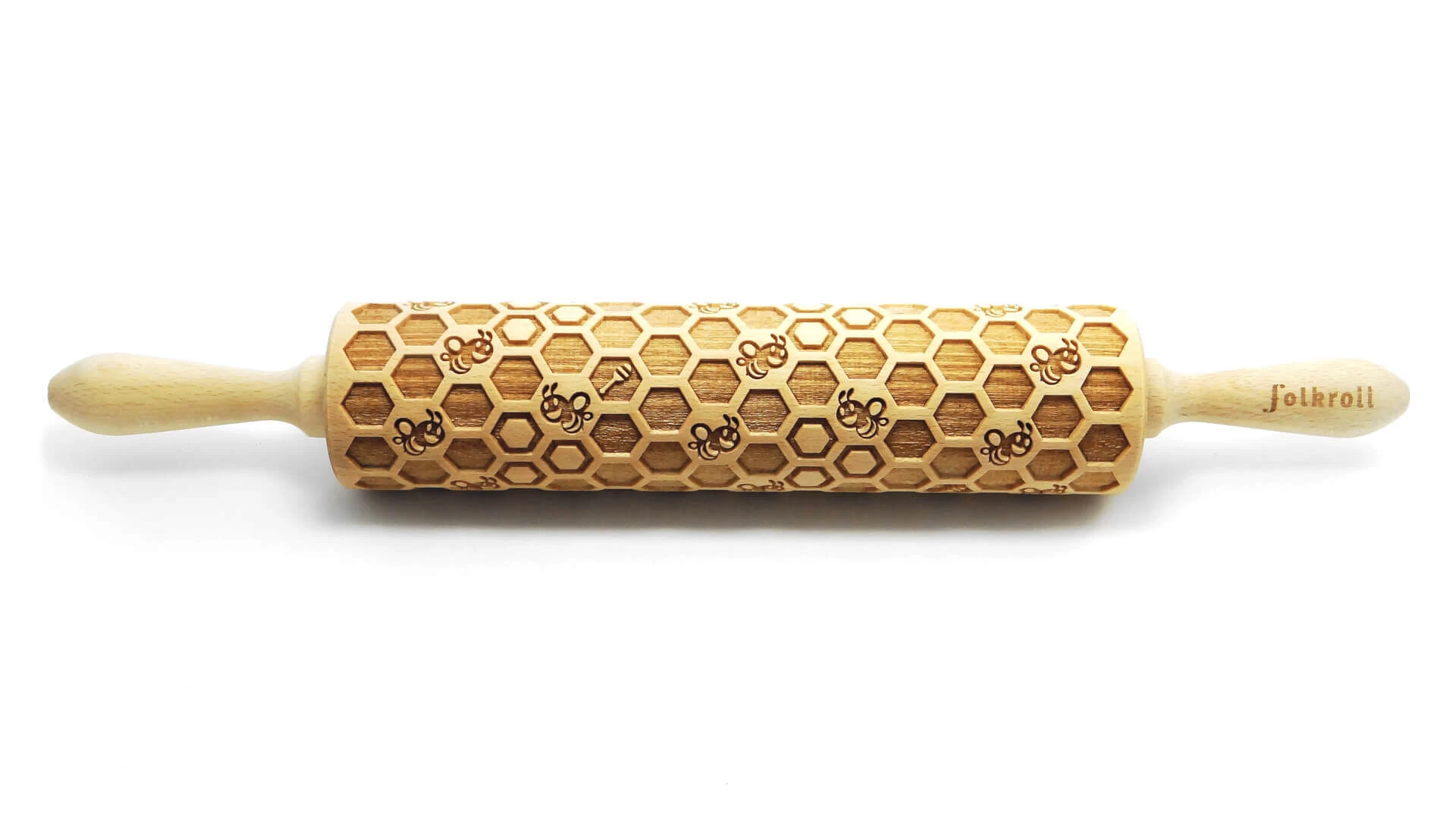 De Folkroll-deegroller met het patroon Honeycomb is vervaardigd uit beukenhout. Het bedrukte deel van de deegroller is 25 cm lang, en heeft een diameter van 6 cm. De gehele deegroller heeft een lengte van 43 cm. Gebruik de Folkroll-deegroller voor het decoreren van koekjesdeeg, chocolade, suiker, marsepein, zout, keramiek of kleiproducten.