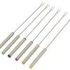 De Laguiole en Aubrac steakmessenset bestaat uit 4 messen met een messenstalen lemmet van 11,5 cm. Het totale mes heeft een lengte van 23 cm. Het heft van het mes is van verschillende houtsoorten. U gebruikt het steakmes met de gladde snede voor het snijden van bereid vlees aan tafel.
