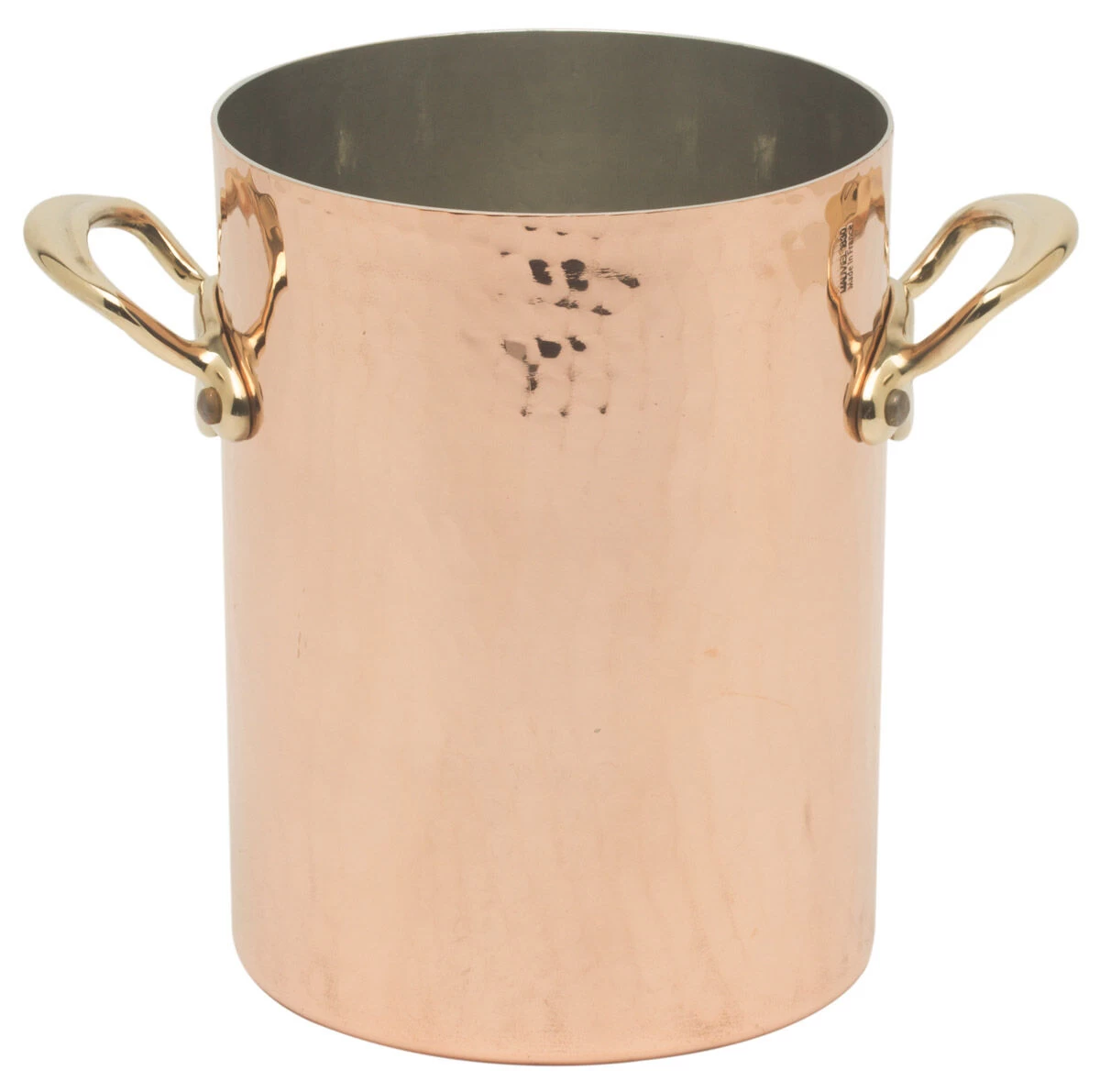 Om oxideren van het koper te voorkomen is de Mauviel champagnekoeler aan de binnenzijde vertind. Deze tinlaag van zuiver, loodvrij, tin is op ambachtelijke wijze aangebracht door een tinnegieter.