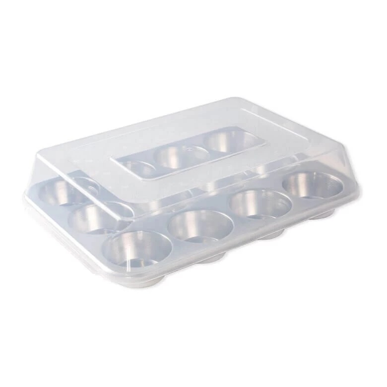 De Nordic Ware bakvorm is gemaakt van aluminium en is 34 cm lang en 24,5 cm breed. Gebruik de vorm voor het bakken van cakejes of muffins. Na het bakken kunt u de muffins gemakkelijk bewaren met de bijbehorende deksel.