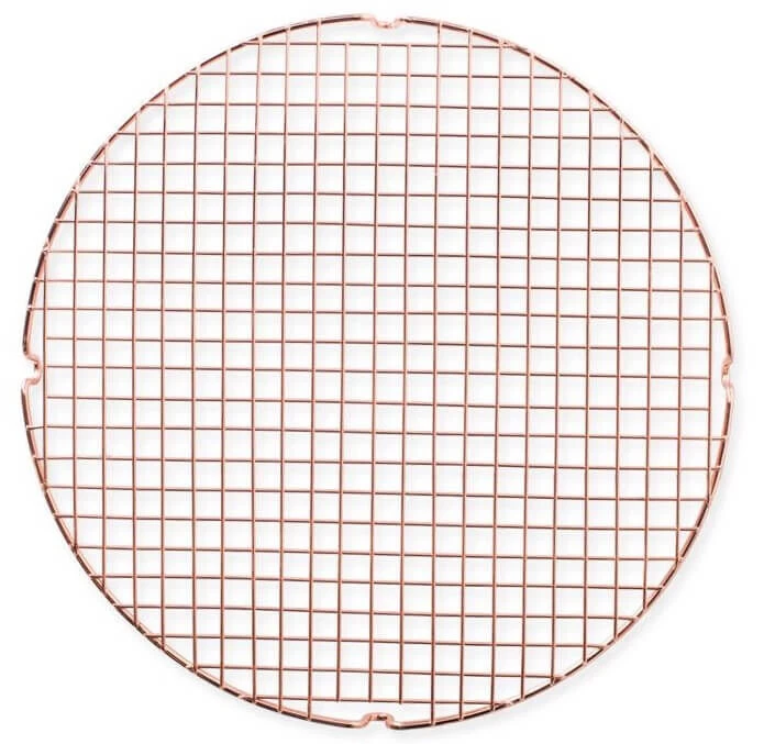 Met het stalen koperkleurige Nordic Ware taartrooster heeft u altijd een veilige plek beschikbaar om uw gebak af te laten koelen. Het rooster heeft een doorsnede van 33 cm en is daarmee perfect in combinatie met de meeste gangbare bakvormen. De verhoogde pootjes zorgen voor een perfecte luchtcirculatie waardoor het gerecht rondom snel afkoelt en condens geen kans krijgt op uw baksel neer te slaan. Het rooster is ook geschikt voor het versieren van koekjes, taart of cupcakes: overtollig glazuur of chocolade valt gemakkelijk door de openingen terwijl uw bereiding veilig op zijn plek blijft. Gebruik het rooster om uw baksels af te laten koelen of op bijzondere wijze te presenteren.