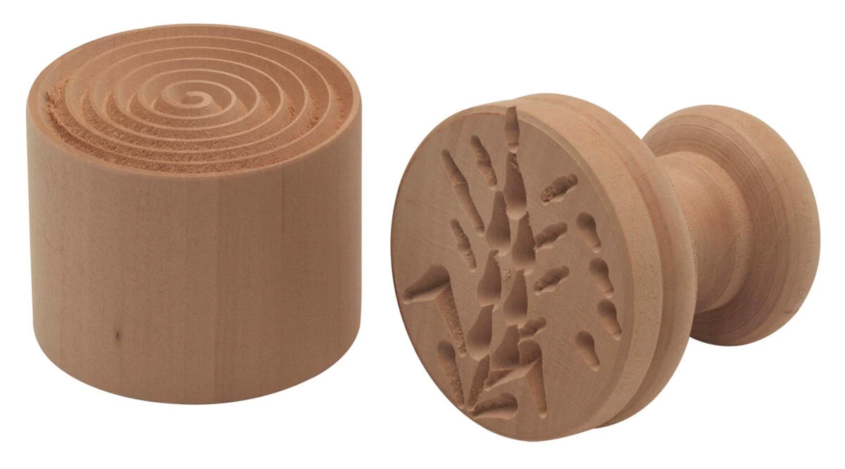 De Oldenhof Corzetti pastastempel is vervaardigd uit beukenhout. De stempel bestaat uit 2 delen, waarmee u pastaschijven, corzetti, maakt.