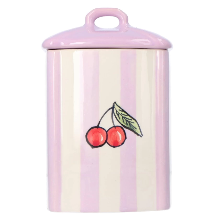 De Oldenhof Kers voorraadpot is gemaakt van geglazuurd aardewerk. De pot heeft een lengte van 18 cm, een breedte van 11 cm en een diepte van 10 cm. De deksel ligt los op de pot, gebruik de pot voor het bewaren van lang-houdbare producten zoals snoep.