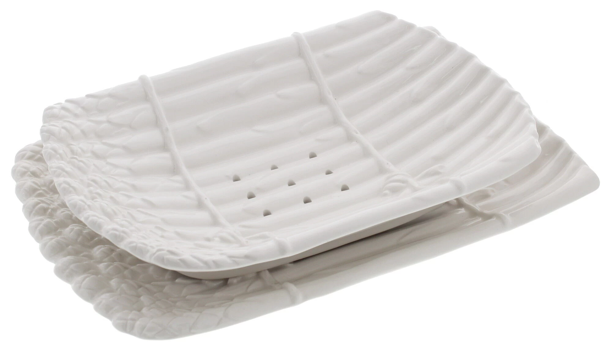 De Oldenhof uitlekschaal is gemaakt van aardewerk en is voorzien van ribbels, ideaal voor het laten uitlekken van asperges. Het vocht kunt u laten uitlekken op het onderbord. Het onderbord kunt u ook gebruiken als aspergeschaal voor het serveren van asperges.