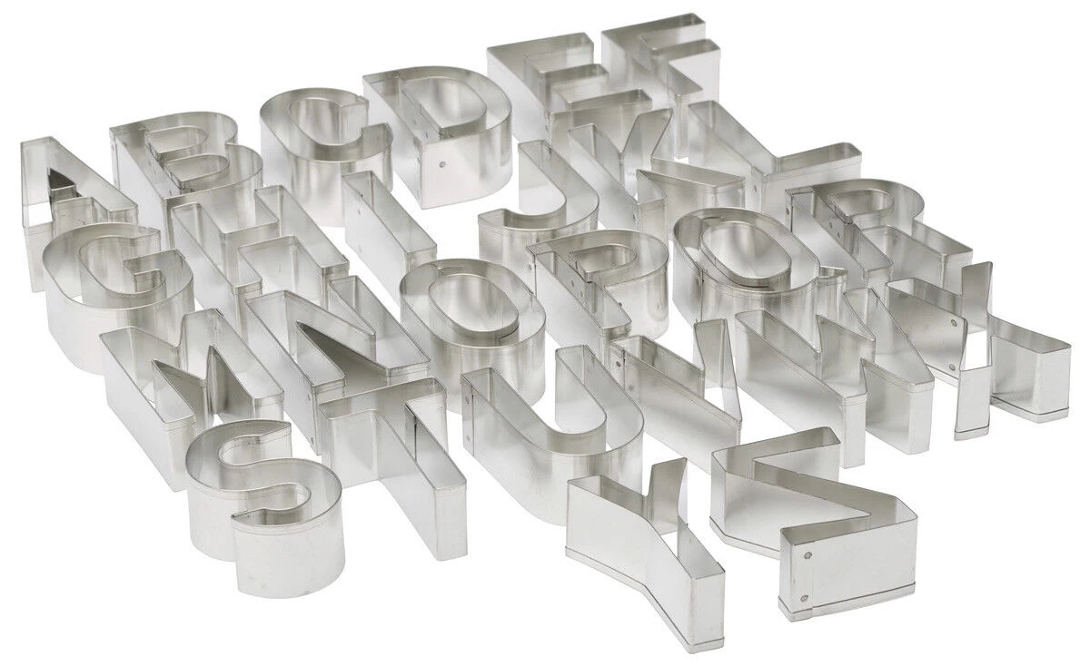 De 26 roestvrijstalen uitsteekvormen van Oldenhof hebben de vorm van alle letters van het alfabet. De letters zijn ongeveer 6 cm hoog en 4 cm breed, maar dit verschilt iets per letter. Gebruik de vormen voor het uitsteken van deeg, fondant of marsepein.