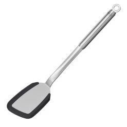 De Rösle spatel is vervaardigd uit roestvrij staal en bevat een silicone rand. De spatel is ideaal voor het keren en serveren van etenswaren, zoals vis of lasagne.