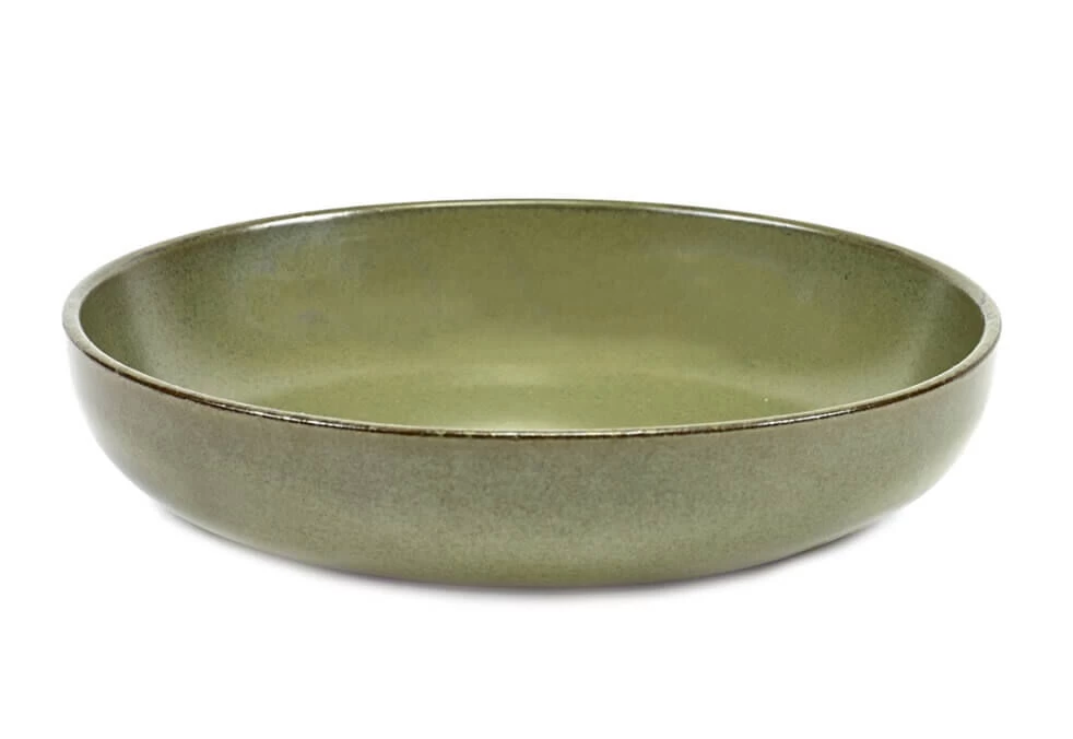 Het Serax Surface by Sergio Herman diepe bord heeft een diameter van 19 cm en is 4 cm hoog. Het aardewerken bord is camogreen van kleur en heeft aan de buitenzijde een matte afwerking.