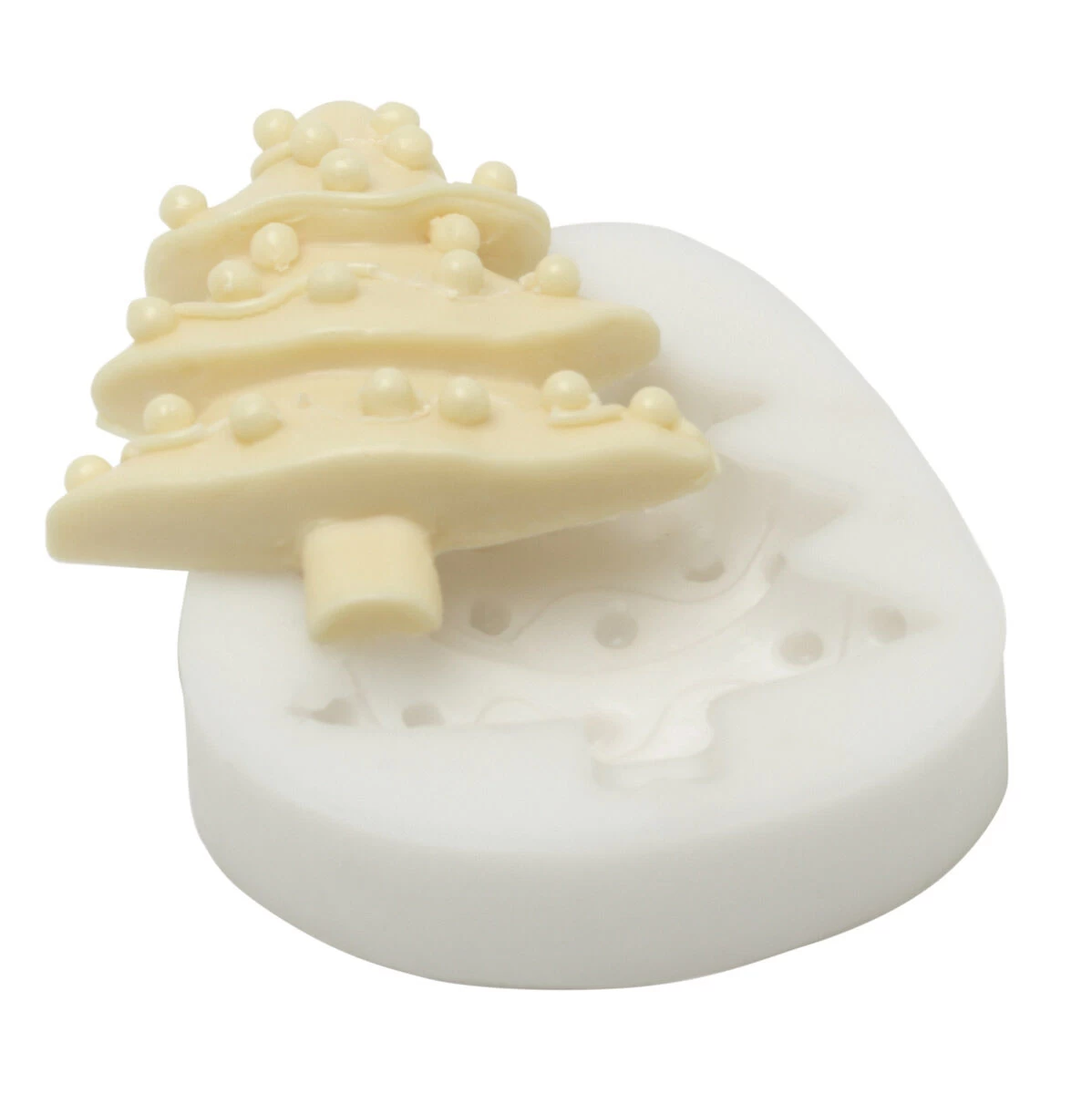 Met de Silikomart Sugarflex decoratiemal maakt u een kerstboom van fondant, marsepein of chocolade. De kerstboom heeft een lengte van 6,5 cm en een breedte van 5,5 cm. De gehele mal heeft een diameter van 7,2 cm. Bij de mal krijgt u een afgietsel als voorbeeld.