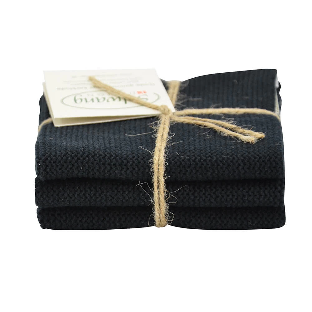 De Solwang Design vaatdoeken zijn vervaardigd uit 100% eco-tex katoen. De set van 3 vaatdoeken komt in de kleur zwart. De doeken zijn 25 cm lang, 25 cm breed en hebben door de breitechniek uitstekende vocht opnemende eigenschappen.