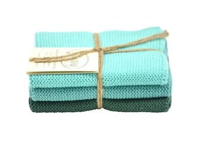 De Solwang Design vaatdoeken zijn vervaardigd uit 100% eco-tex katoen. De set van 3 vaatdoeken komen in 3 verschillende tinten petrol. De doeken zijn 25 cm lang, 25 cm breed en hebben door de breitechniek uitstekende vocht opnemende eigenschappen.