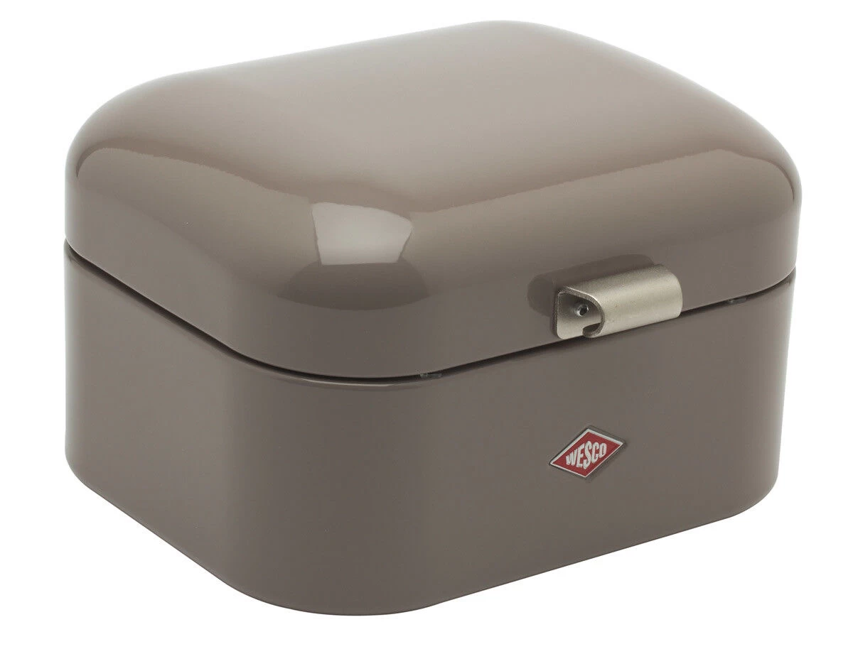 De plaatstalen Wesco Single Grandy broodtrommel in warm grijs. De trommel heeft een lengte van 28 cm, een breedte van 21,5 cm en een hoogte van 17 cm. De broodtrommel houdt uw brood, koek en cake langdurig vers.